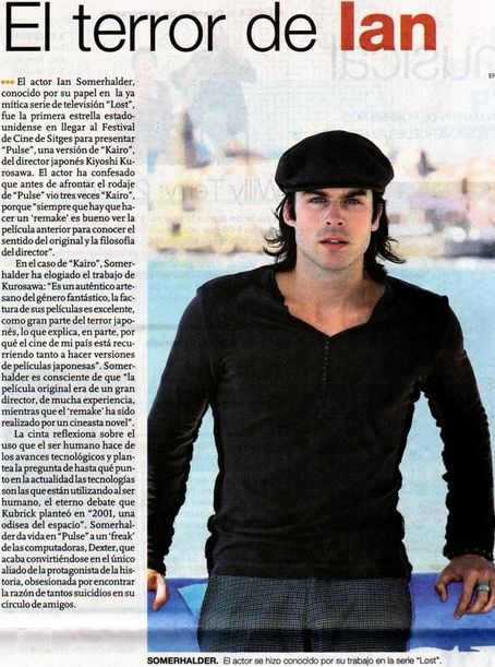 Актер Ян Сомерхолдер, известный по своей роли в уже легендарном сериале «Остаться в живых», был главной звездой, прибывшей на кинофестиваль в Ситгейс, чтобы представить «Пульс» - римейк «Kairo» японского режиссера Киёши Куросава. Актер признался, что перед тем, как приступит к съемкам в «Пульсе», он трижды посмотрел «Kairo», потому что «всегда, когда приходится делать римейк, лучше заранее посмотреть фильм, чтобы понять подлинные чувства оригинала и философию режиссера».В случае с «Kairo», Сомерхолдер одобрил работу Куросава: «Это подлинное мастерство в жанре фантастики, фактура его фильмов – превосходна, как огромная часть японских фильмов ужасов, что от части объясняет, почему в моей стране есть тенденция делать версии японских фильмов». Сомерхолдер понимает, что «оригинал – фильм великого режиссера с большим опытом, в то время как римейк был создан для начинающего кинорежиссера».