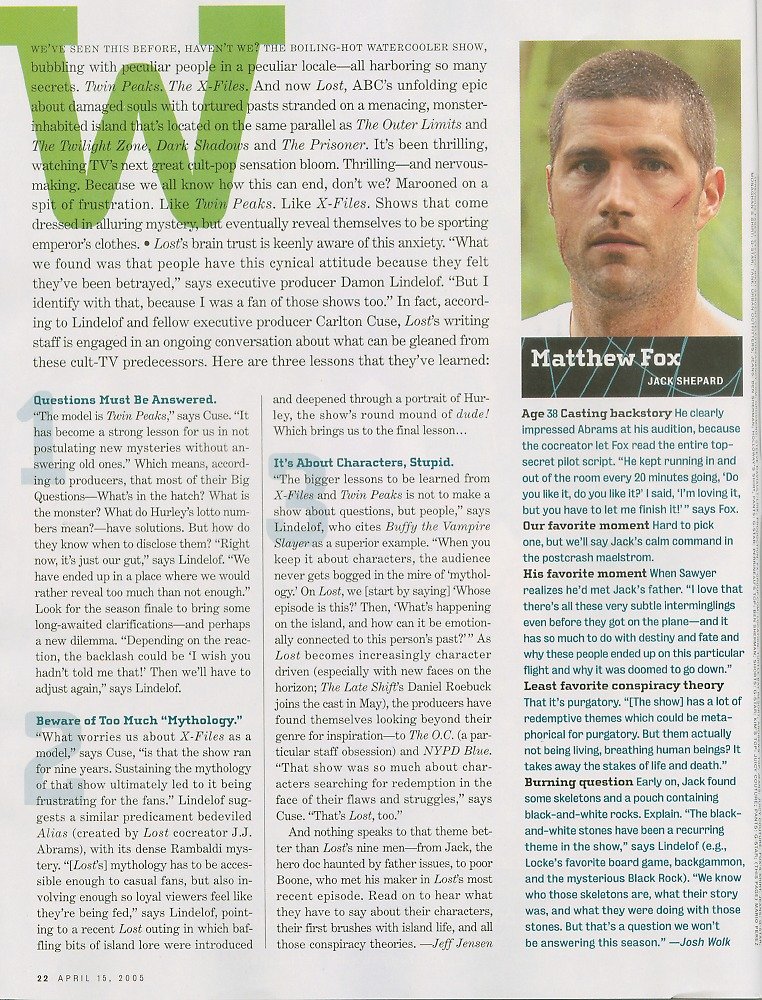 Сканы статей из журнала "Entertainment weekly" (15 апреля 2005, №815)